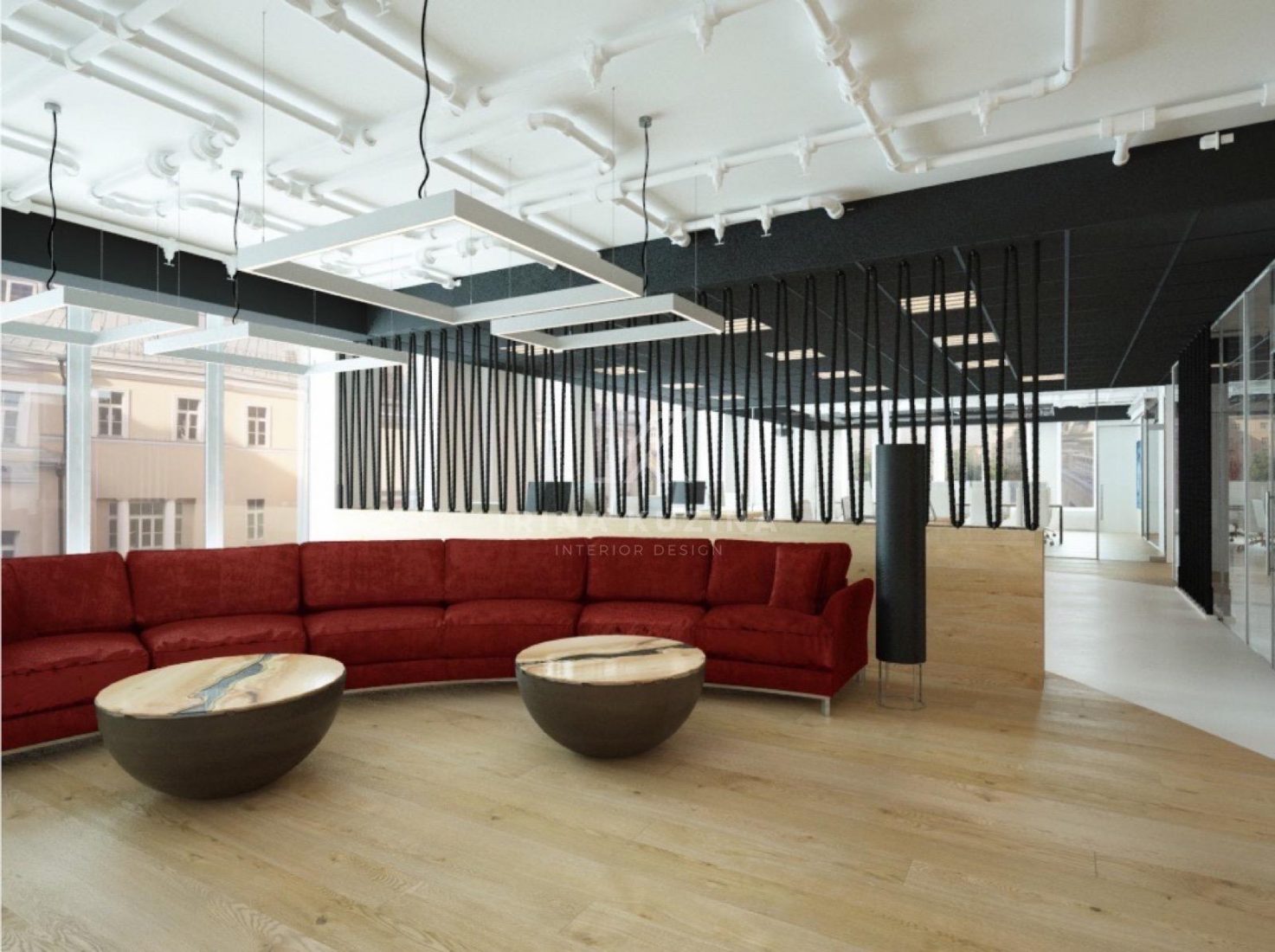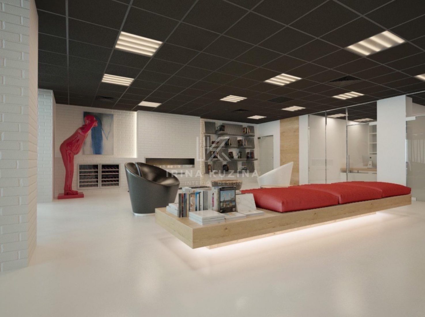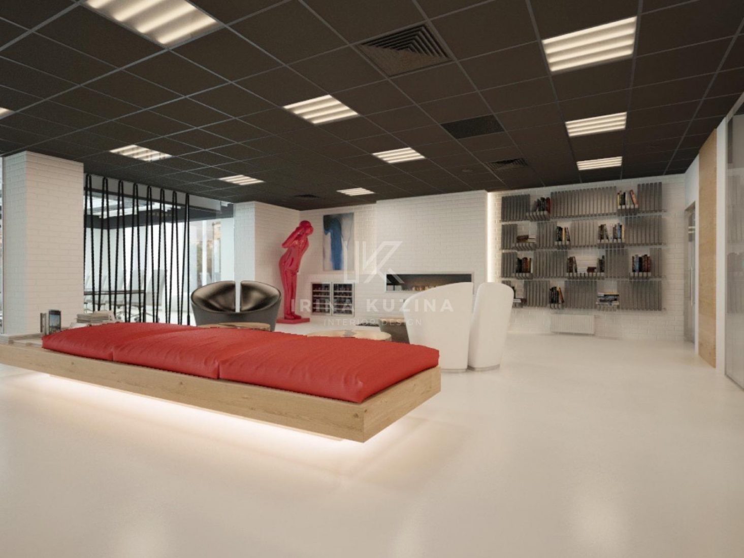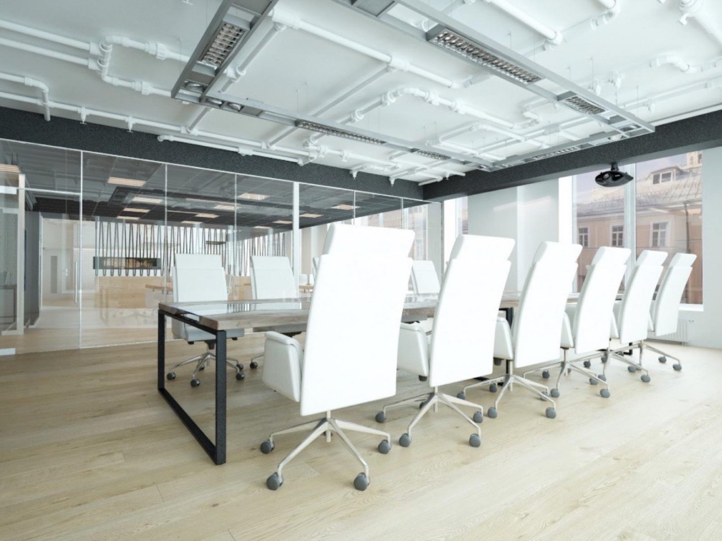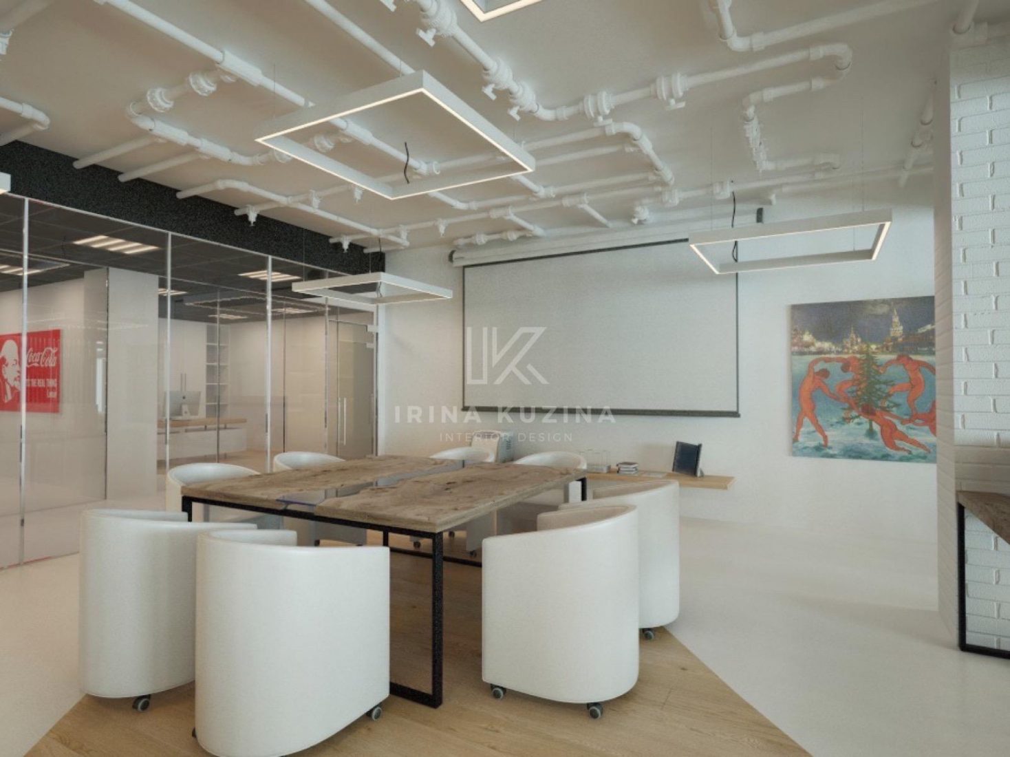 Современный, стильный, не загруженный деталями, с яркими акцентами в виде предметов искусства - вот основа дизайна для переговорной и офиса мировых масштабов!