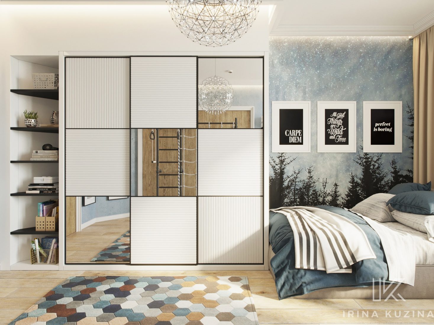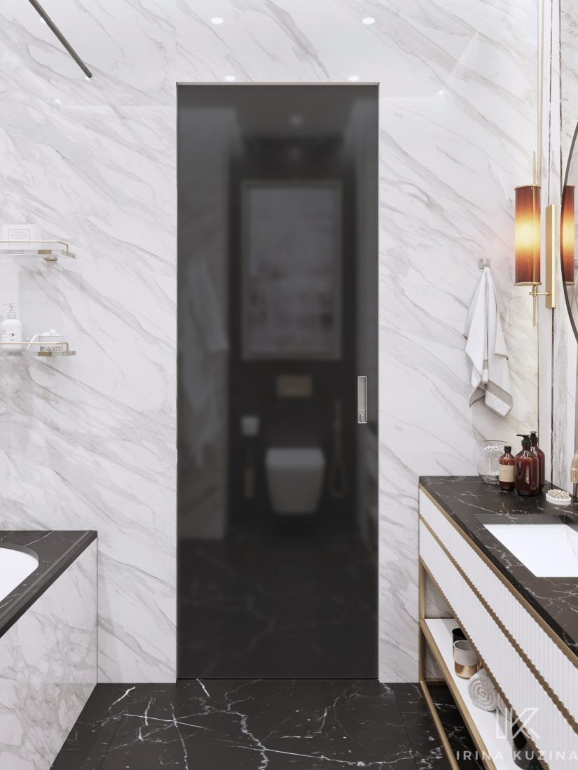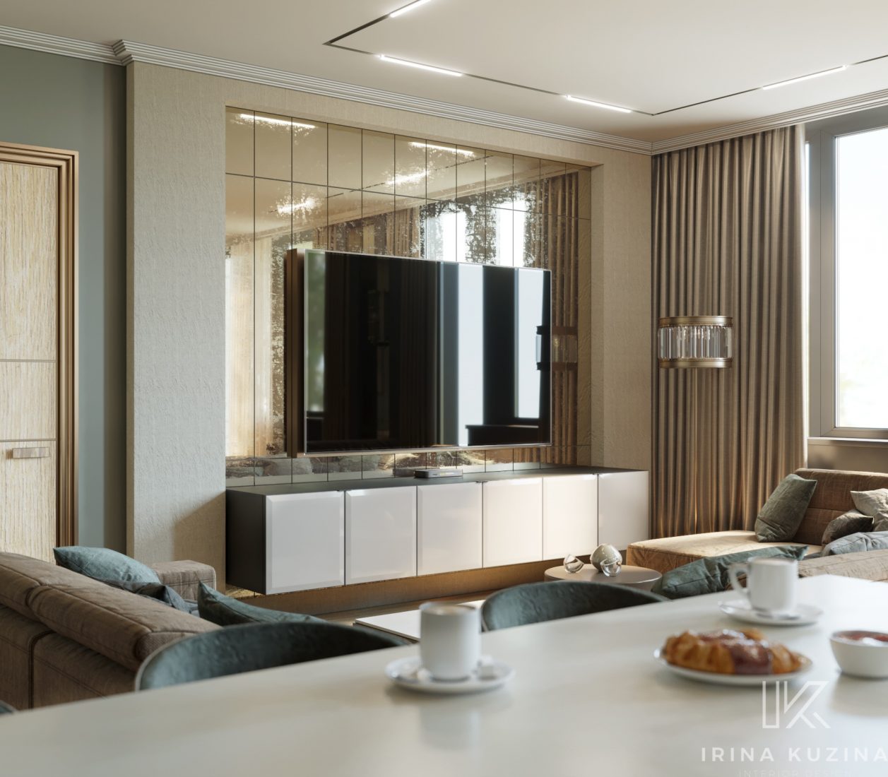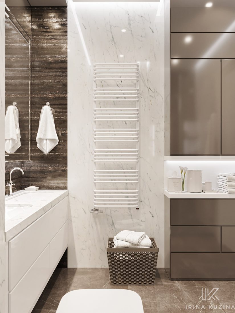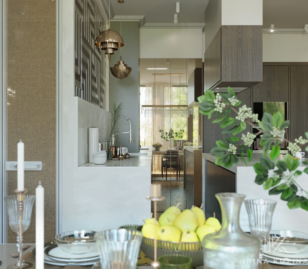 Сложные, глубокие цвета стен, подчеркивают статусность и нетривиальность выбора стиля. Это стильная квартира для большой семьи, где у каждого ее члена своя комната, ванная и гардеробная, не считая кабинета и общей зоны. Основная спальня очень респектабельна, необычна. Цвет отделки, формы, фактуры яркие сами по себе, но не утомительны.