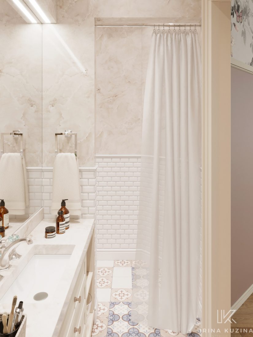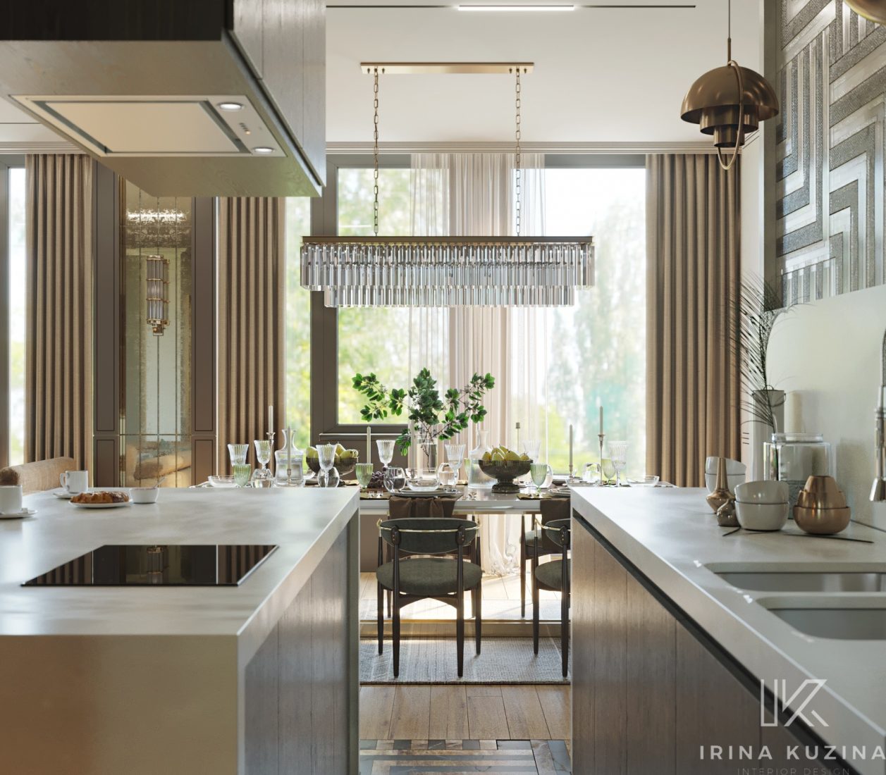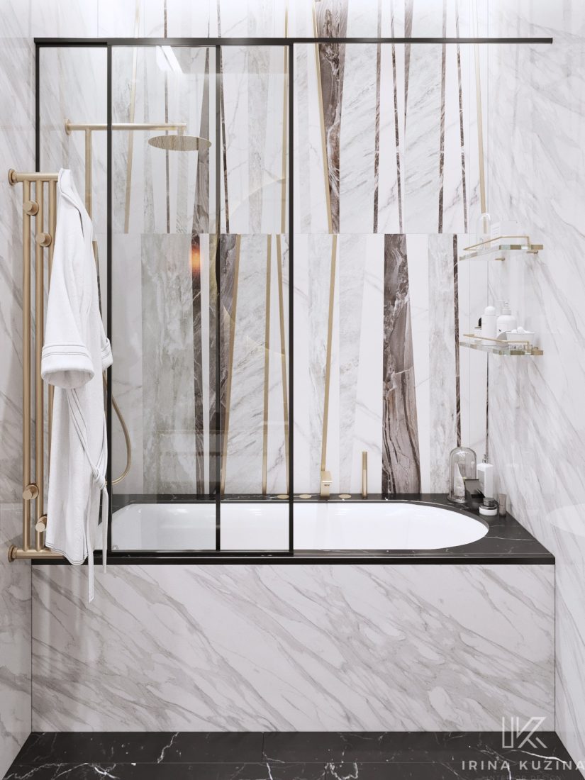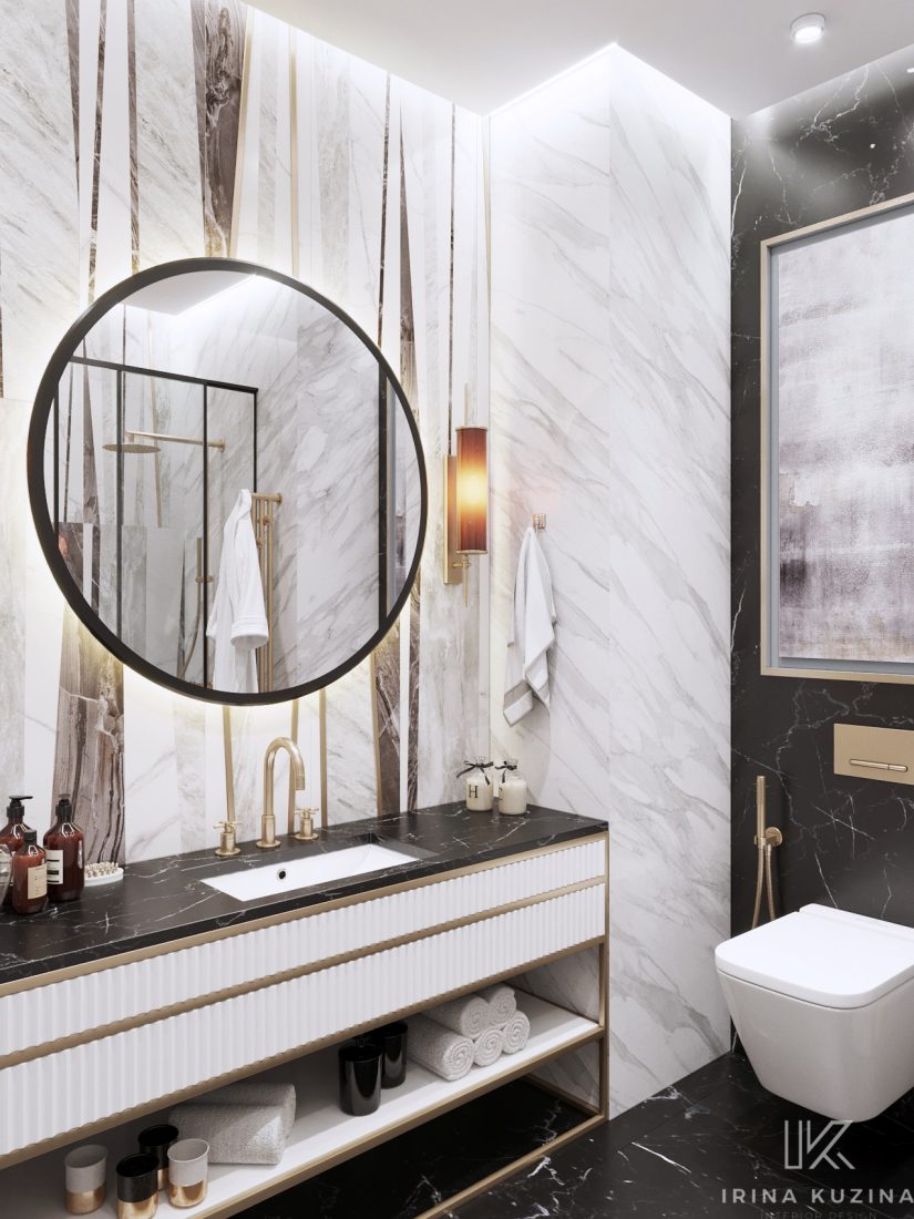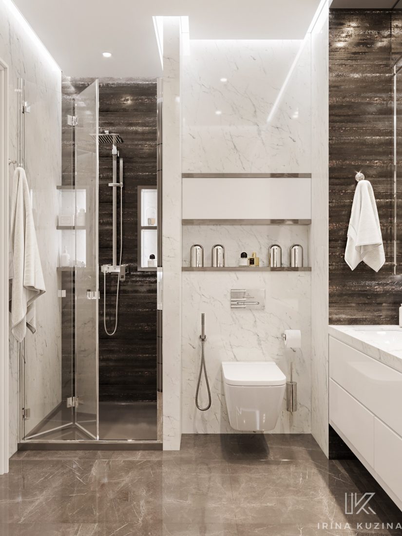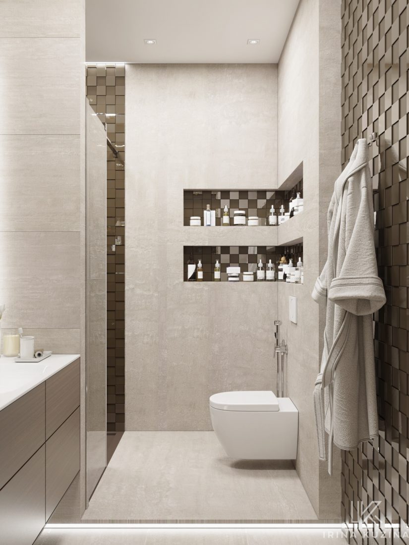 Сложные, глубокие цвета стен, подчеркивают статусность и нетривиальность выбора стиля. Это стильная квартира для большой семьи, где у каждого ее члена своя комната, ванная и гардеробная, не считая кабинета и общей зоны. Основная спальня очень респектабельна, необычна. Цвет отделки, формы, фактуры яркие сами по себе, но не утомительны.