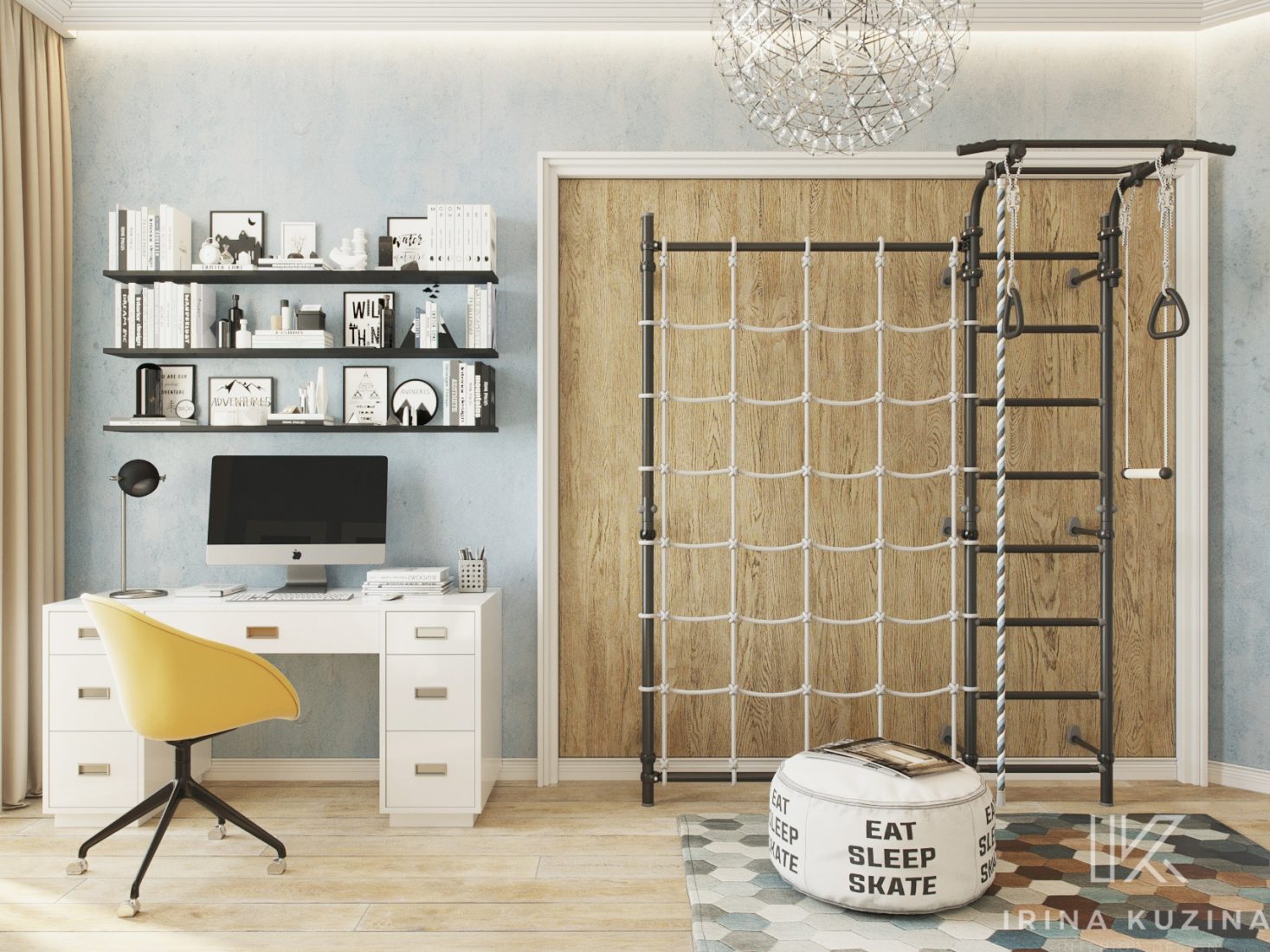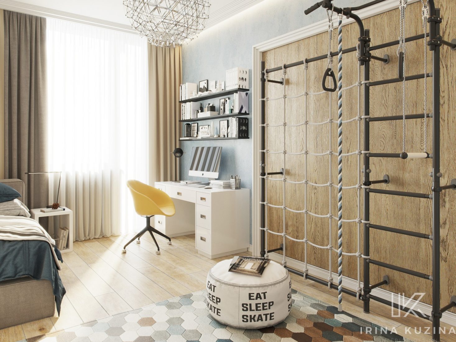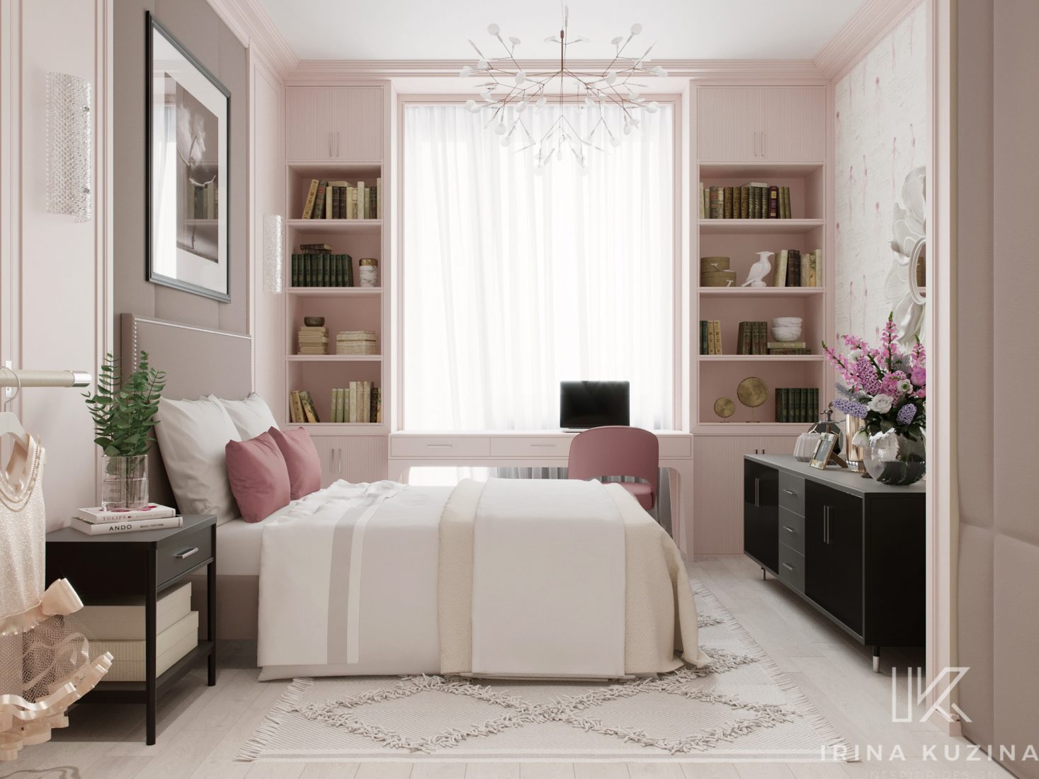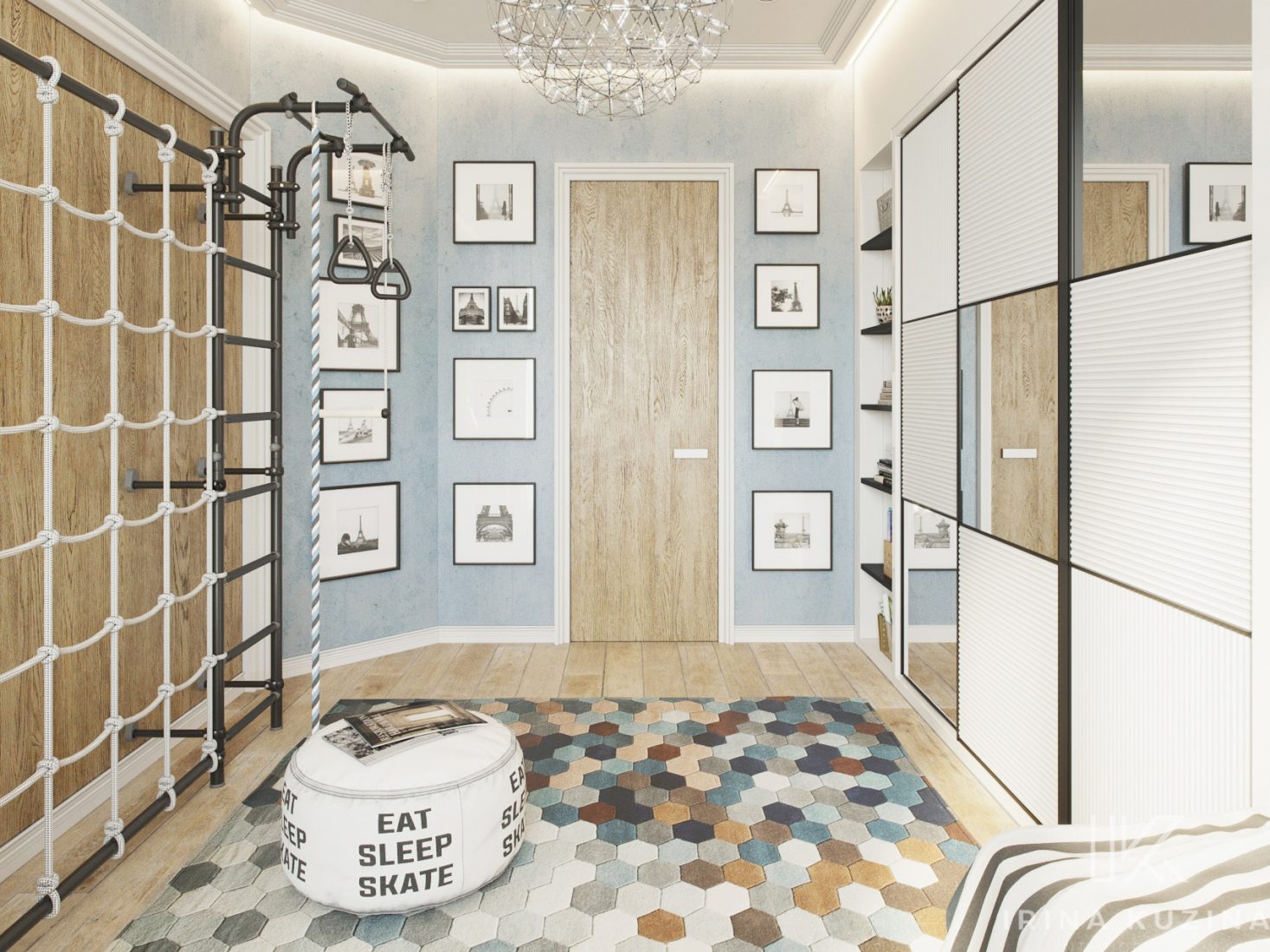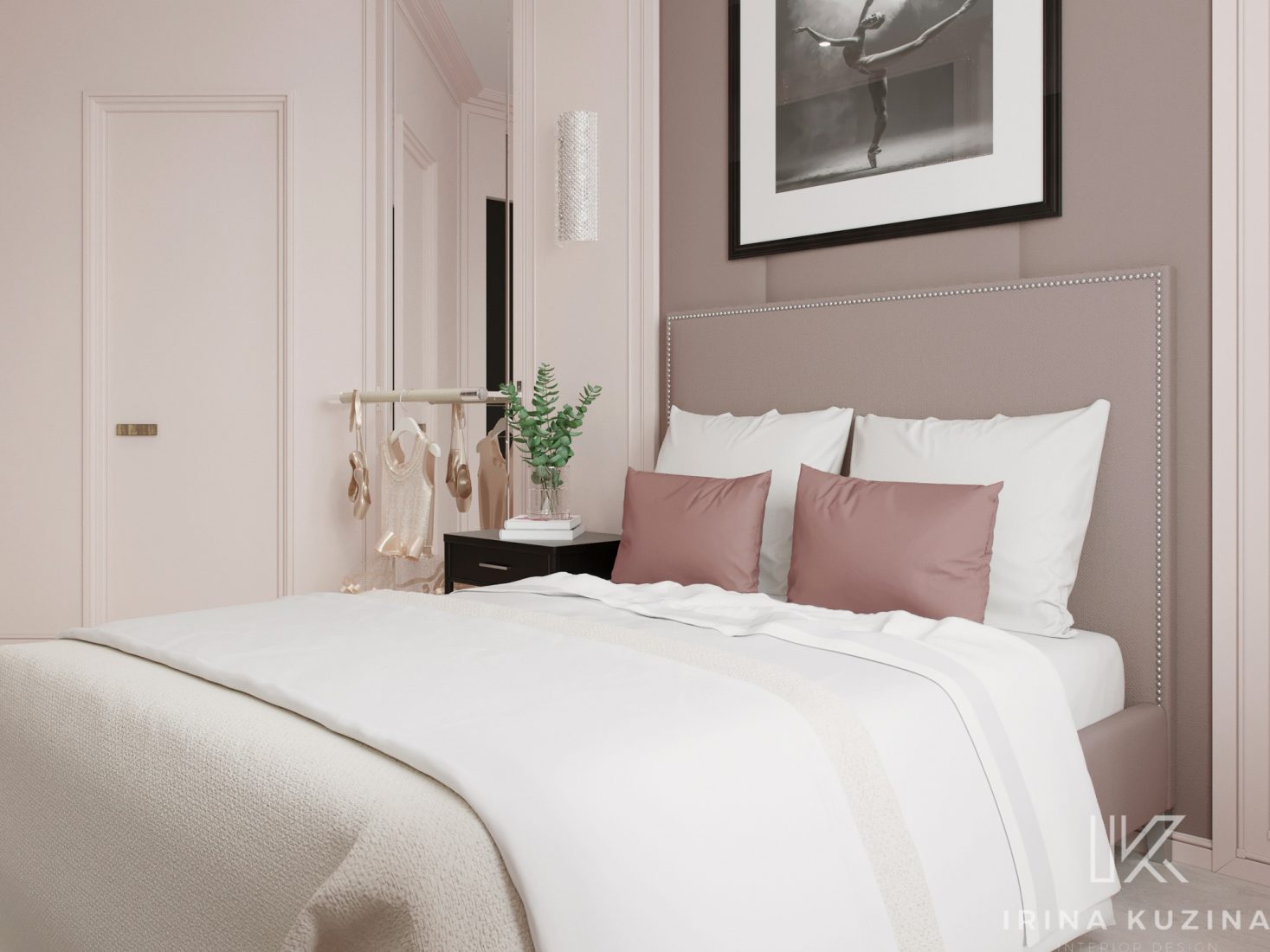 Например, дочка занимается балетом, и ей предложили на двух стенах нежные и романтичные обои с балеринами. И не забыли про мини-балетный станок.
